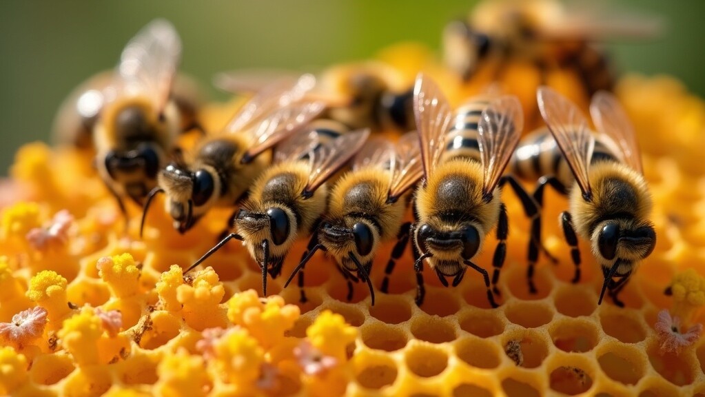 No matter the species, honey bees exhibit some super interesting behaviors. Organized into colonies with a single queen, thousands of workers, and a few hundred drones, they show impressive cooperation. The workers split up their roles: cleaning, creating wax, feeding young bees, guarding the hive, and gathering nectar and pollen.