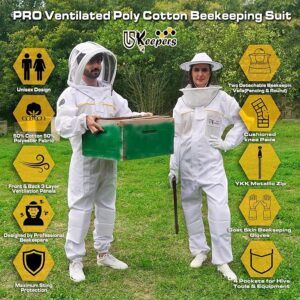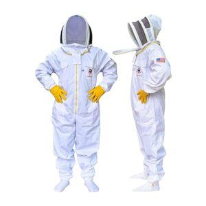 - The classic beekeeping suit (Amazon link) is a must. These suits are usually white and made out of thick material to prevent stings from getting through. They’re not exactly runway ready, but they do the job right.